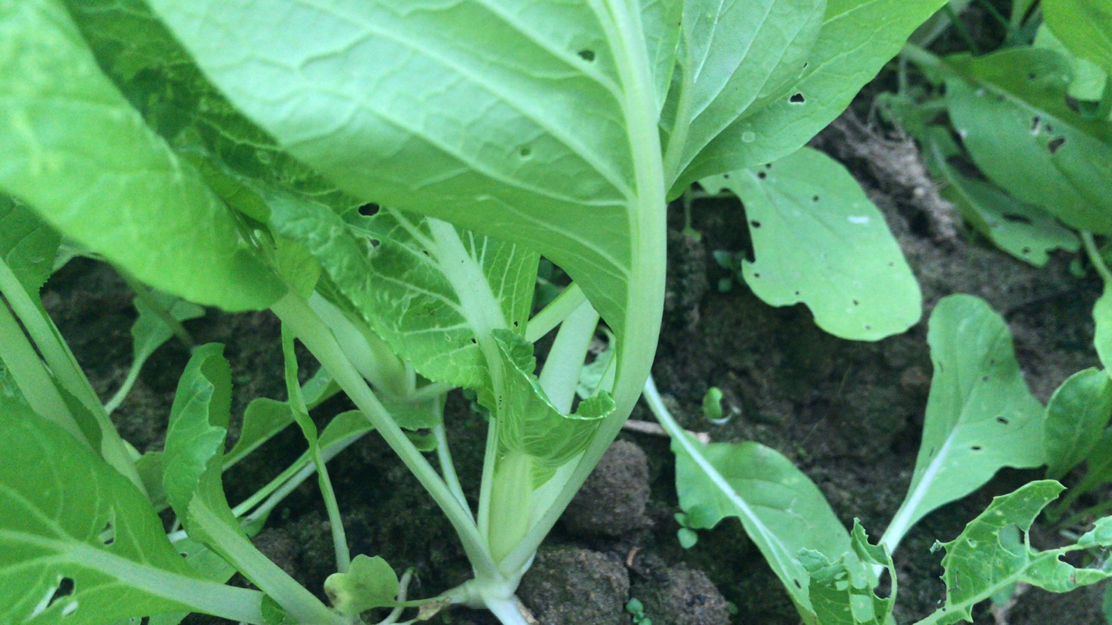 本周采摘的葉菜:含菜心、上海青、小白菜、矮腳白菜等均出現不同程度的蟲害,主要是跳甲蟲。此蟲吃葉非常之厲害,這批菜本周都會收完,估計本周葉菜均會出現不同程度的蟲眼。【詳情】
